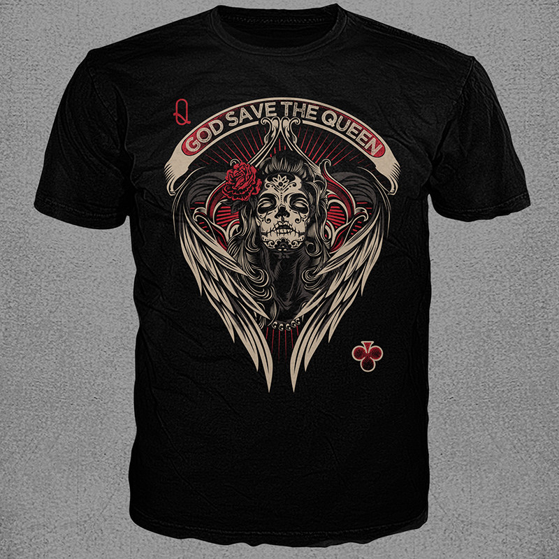 The Queen Designed (psd.) easy editable font (attached original font link 100% free) vector art so colors and size very easy editable for any shirt colors.