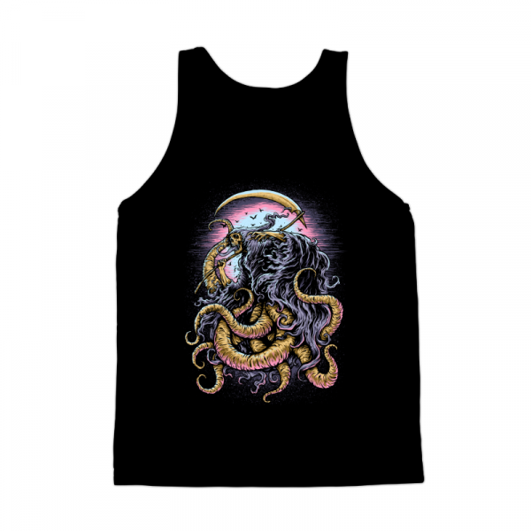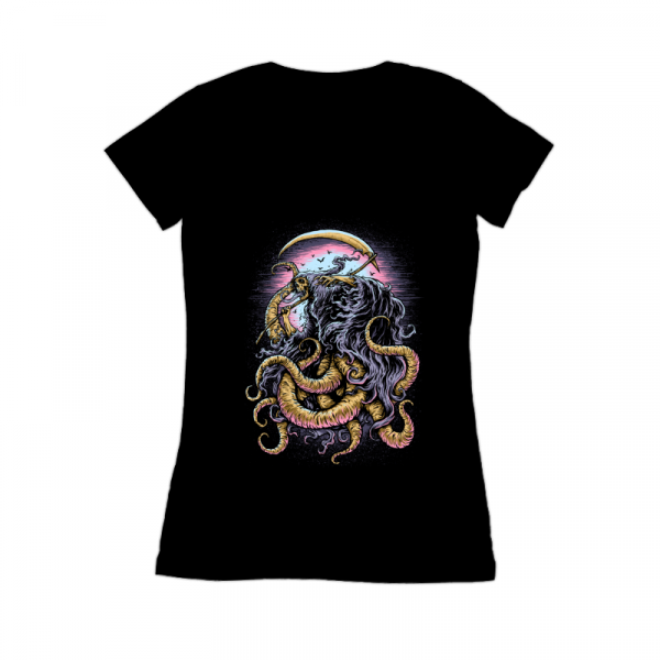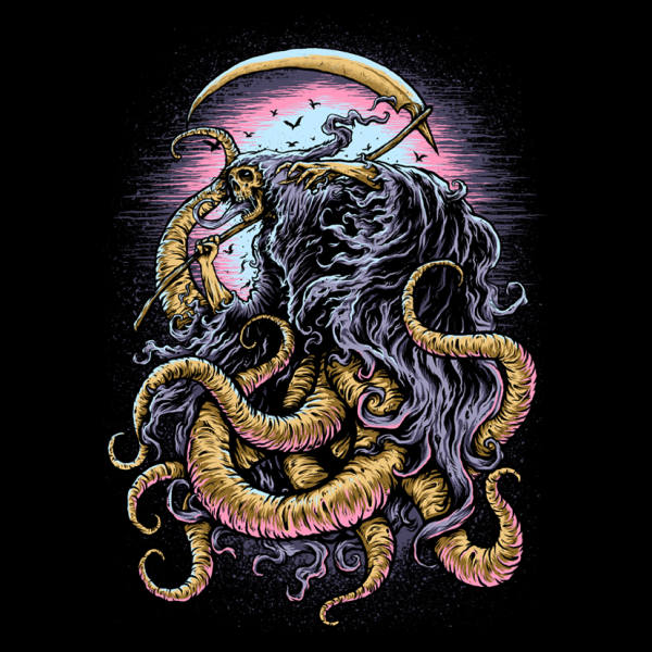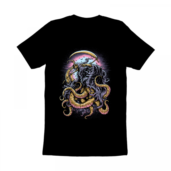 Illustration of Grimm Reaper take the souls with those tentacles. The illustration made in clip studio paint and finishing it in Photoshop. The result is really stand out with a black shirt