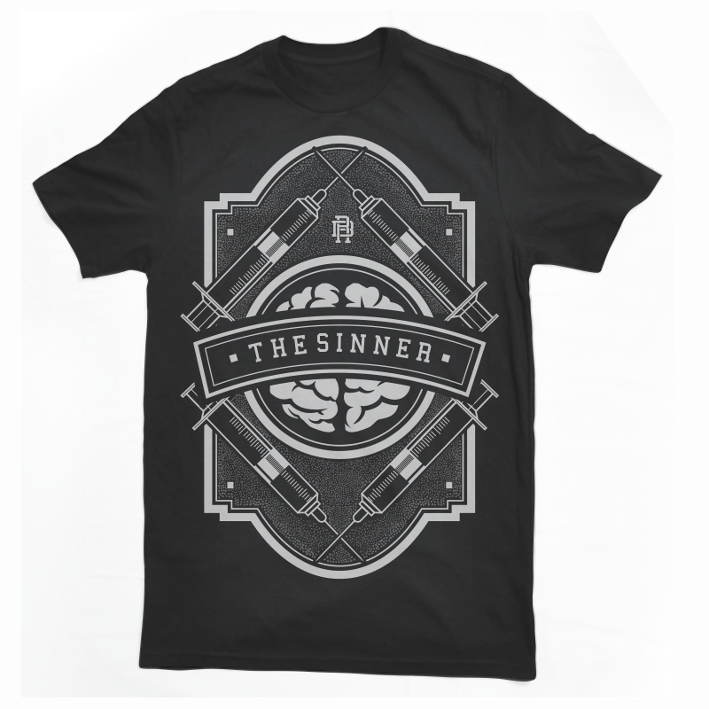 The Sinner T-shirt design template with CorelDraw or Adobe Illustrator. 2 colour print, CDR,AI,PSD separated Layers. Can be used for digital printing and screen printing.