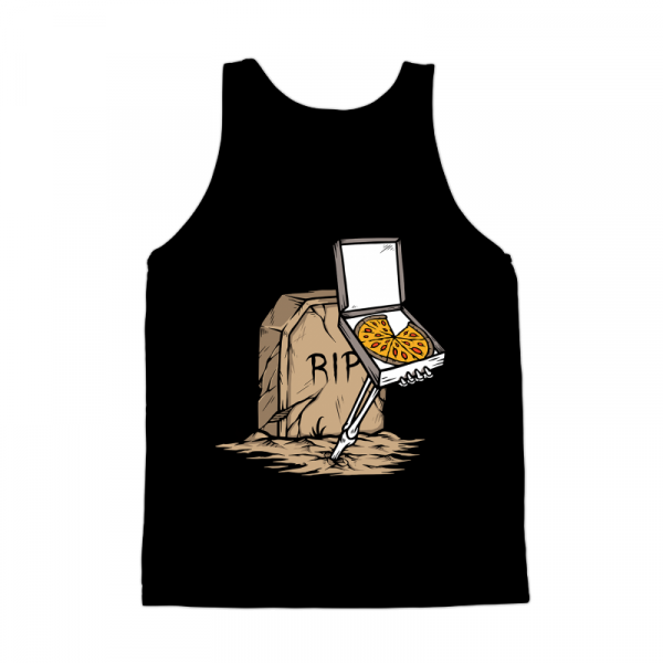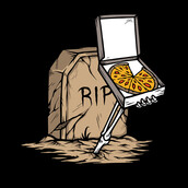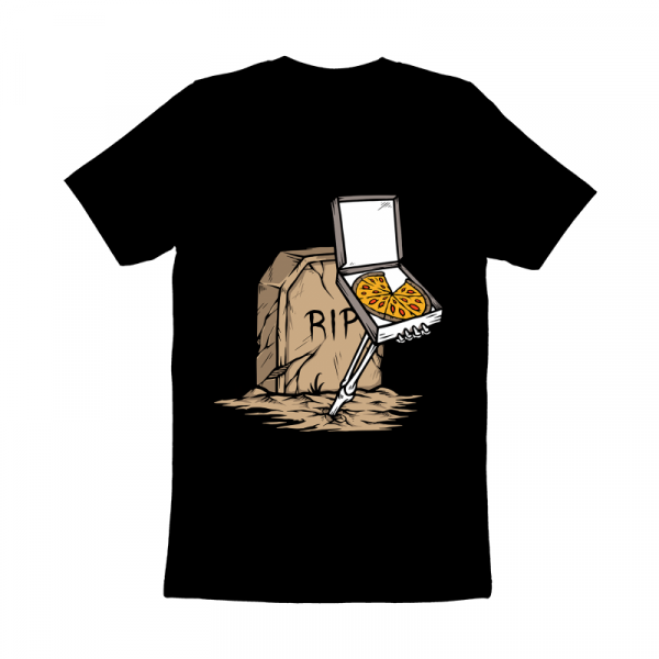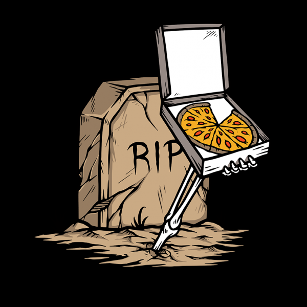 The skull gives pizza from inside the grave