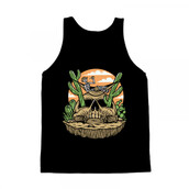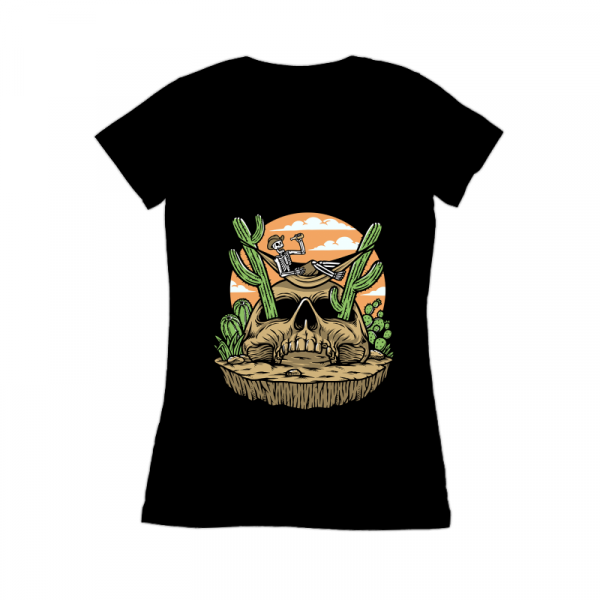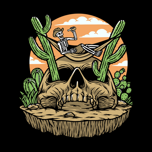 the skull is lying down on the cactus