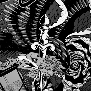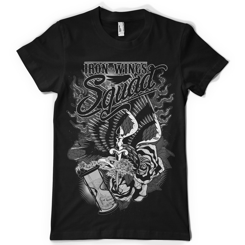 The squad printed t-shirt features a detailed screen print of daggered eagle now available for Adobe Illustrator, Adobe Photoshop and Corel Draw and can be used for digital printing and screenprinting .