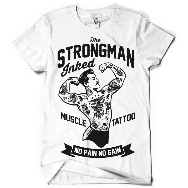 The Strongman T-shirt design created with Corel Draw and Adobe illustrator. 1 colour print, CDR,AI, separated Layers. Can be used for digital printing and screen printing.