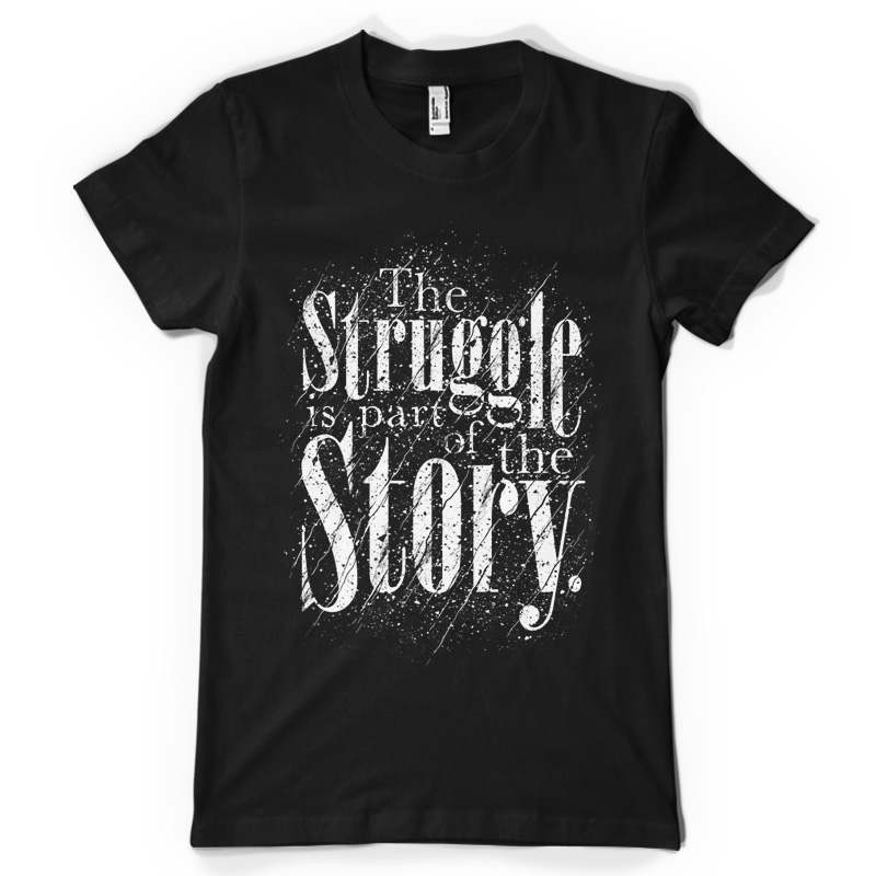 "The Struggle" is a unique typography of the quote "The Struggle is part of the Story." This design is combined with unique customized font and grunge textures and design using only 1 color for easier usage. File contains a PSD file with 17x24 in size.