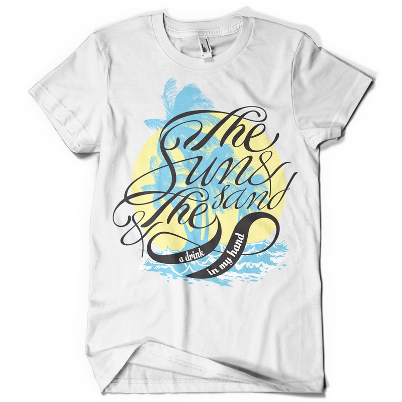 The sun and the sand graphic design template in vector format, featuring detailed summer holiday design now available for Adobe Illustrator, Adobe Photoshop and Corel Draw and can be used for digital printing and screenprinting .