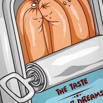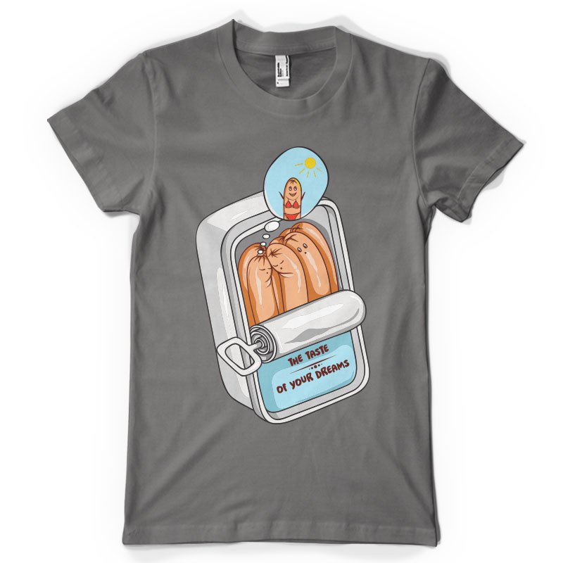 The taste of your dreams is an illustration made in Adobe Illustrator,featuring some sausages into a food can.It can be used on digital printing,screen printing and T-shirt design and it is available in PSD,EPS,AI and PNG format file.