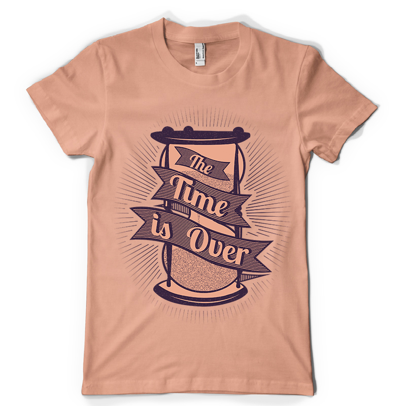 The Time is Over t-shirt design features a detailed screen print of glasshour now available for Adobe Illustrator, Adobe Photoshop and Corel Draw and can be used for digital printing and screenprinting .