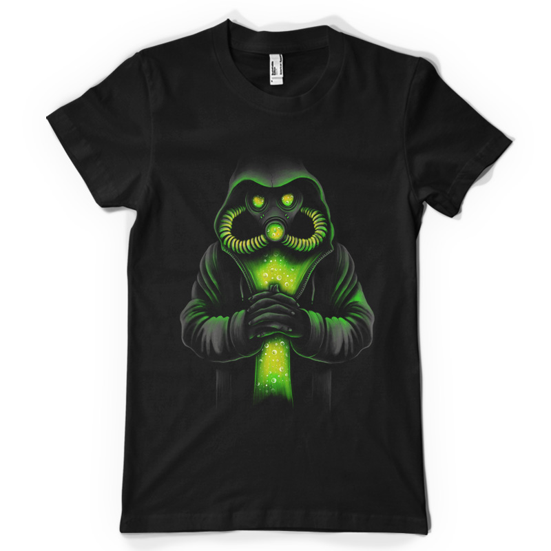 "The Toxicity" is a unique illustration of a human being captivated by toxic wearing a gas mask. This unique illustration is for all humans concerned about nature. Design is very eye-catching because of its neon colors that pops out on dark shirts. File contains a PSD file with 17 x 24 in size.