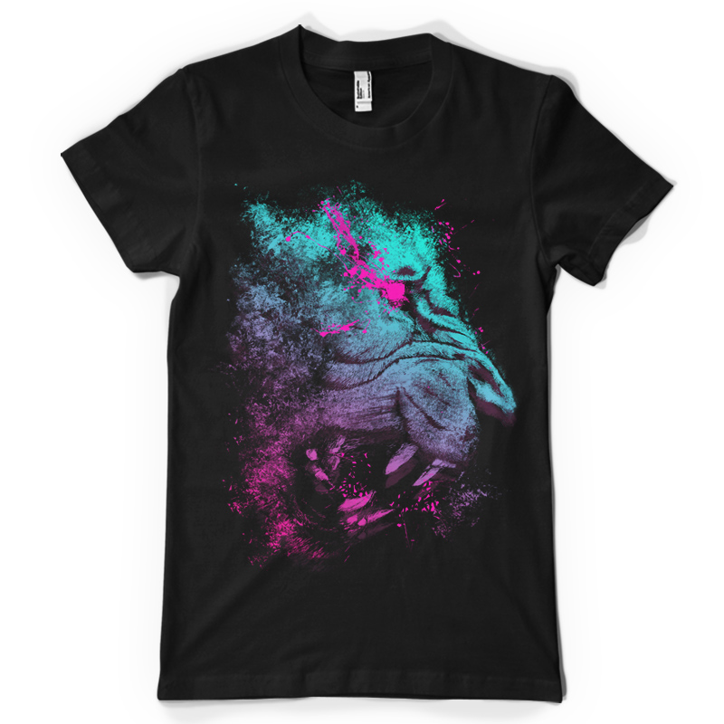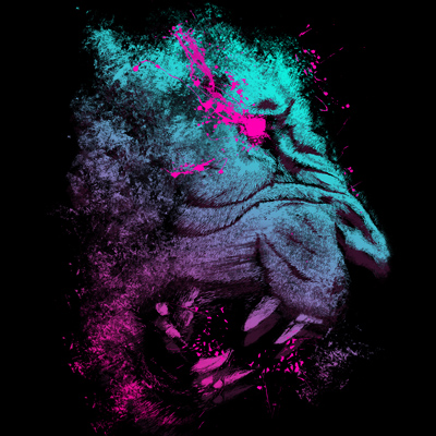 Unique illustration of a wild Lion creating a huge roar, emphasizing its strength and its agility to attack anyone who stands on its way. This design is mixed with different colors of violet, purple and accents of neon pinks which makes it stand out.