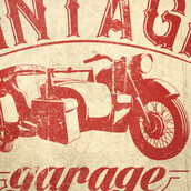 The vintage garage graphic design template in vector format, featuring detailed retro motorcycle now available for Adobe Illustrator, Adobe Photoshop and Corel Draw and can be used for digital printing and screenprinting .