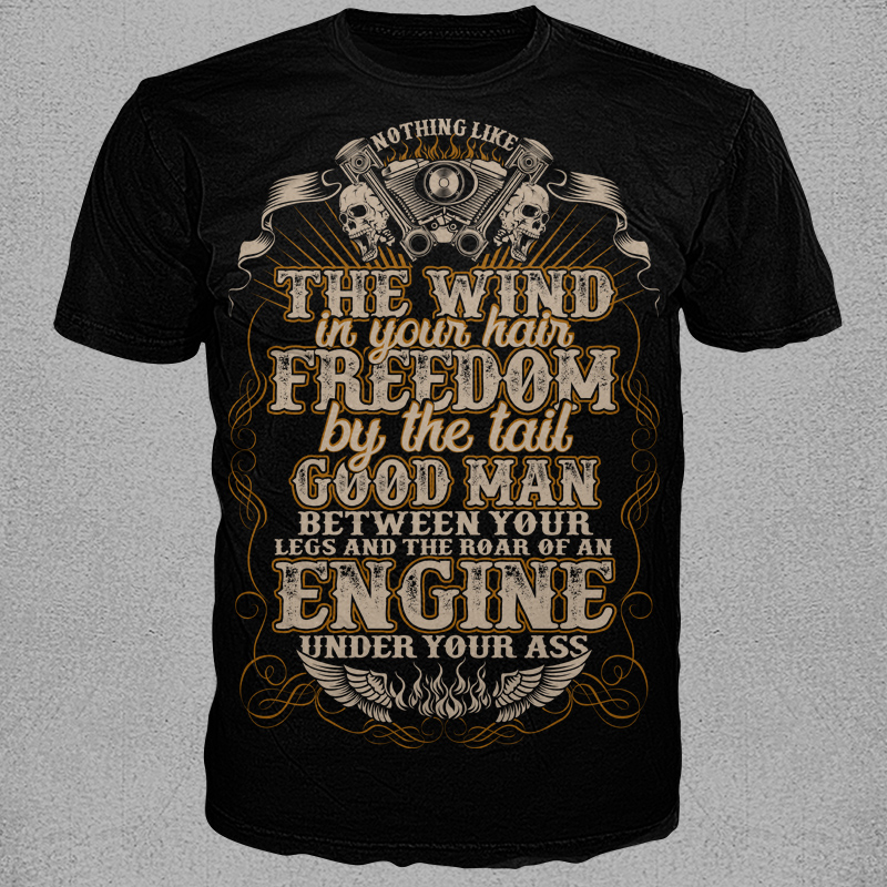 Colors and size in "The Wind Freedom" is easy editable for any dark colors shirt.