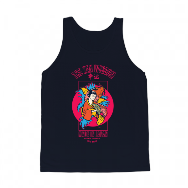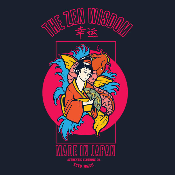 Vector illustration of zen japanese geisha with koi vintage tattoo in the 80's style retro graphic. Ready to print on t-shirt.