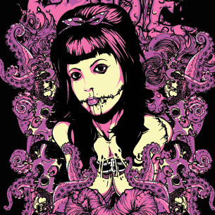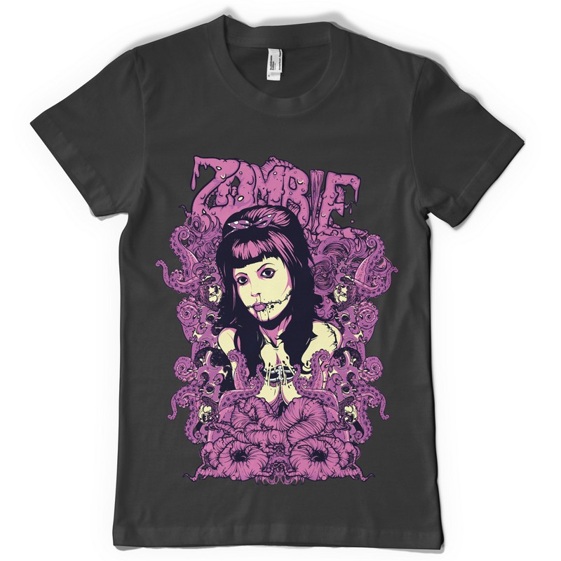 The zombie look design template in vector format, featuring detailed zombie girl now available for Adobe Illustrator, Adobe Photoshop and Corel Draw and can be used for digital printing and screenprinting .