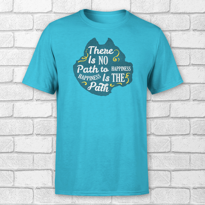 Spiritual motivation quote typography "There Is No Path To Happiness, Happiness Is The Path"