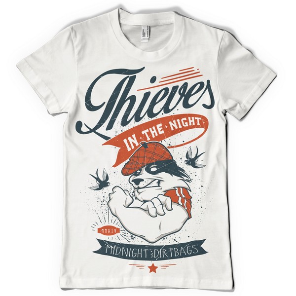 Thieves in the Night printed t-shirt features a detailed screen print of badass thieve racoon now available for Adobe Illustrator, Adobe Photoshop and Corel Draw and can be used for digital printing and screenprinting .