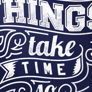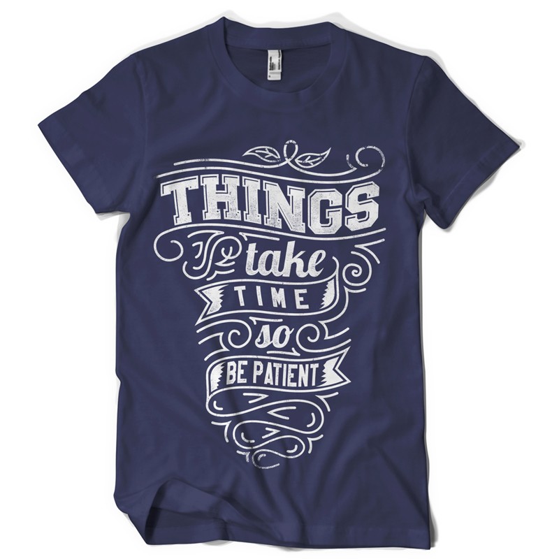 Things take time graphic design template in vector format, featuring detailed typographic message now available for Adobe Illustrator, Adobe Photoshop and Corel Draw and can be used for digital printing and screenprinting .