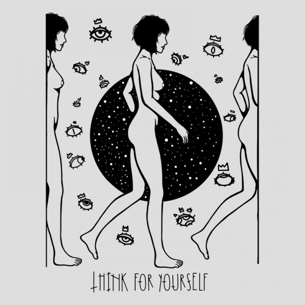 "Think for yourself" design is available in high quality files, such as PSD,TIFF, and PNG. The files are organized on separate layers and all elements are editable. Can be used for both digital (DTG) and screenprinting.