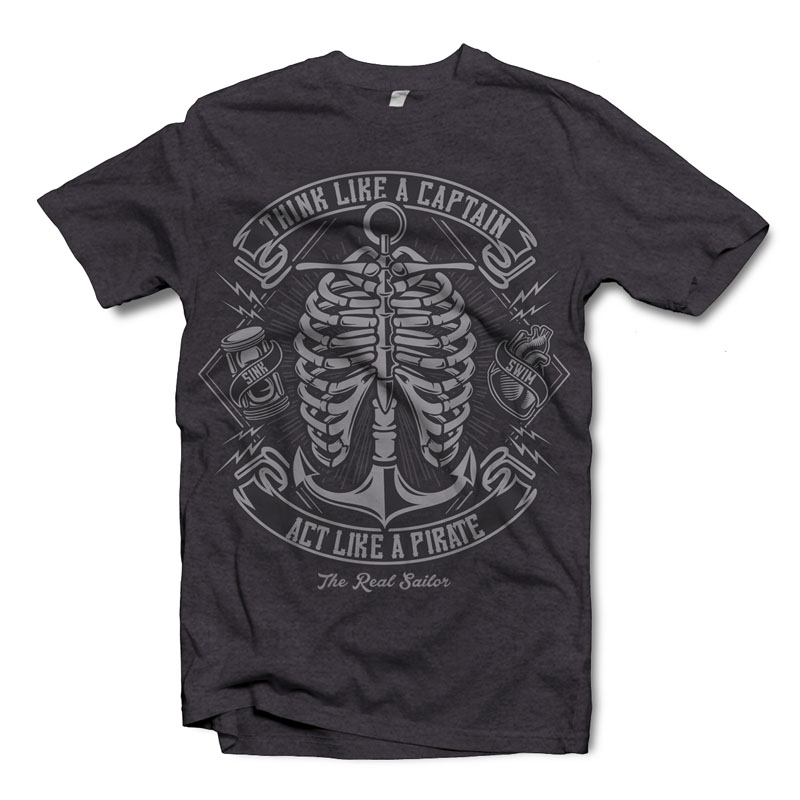 Think Like A Captain Act Like A PirateT-shirt design template with CorelDraw or Adobe Illustrator 2 colour print, CDR,AI,PSD separated Layers. Can be used for digital printing and screen printing.