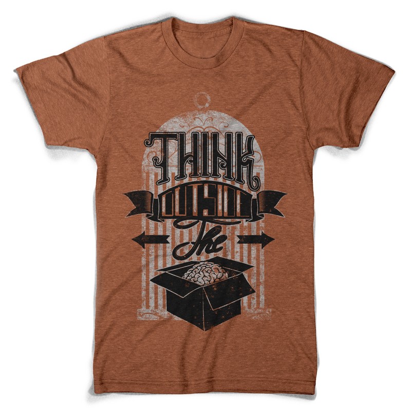 Think outside the Box graphic design template in vector format, featuring detailed motivation t shirt now available for Adobe Illustrator, Adobe Photoshop and Corel Draw and can be used for digital printing and screenprinting .