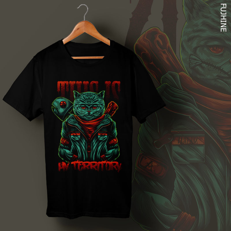 Digital design featuring images of cat thugs. This illustration depicts a cat that is strong and does not like dogs that carry fish and wood as their weapons. This design is available in bitmap format and can be used for digital printing and screen printing. This file will be available for Adobe Photoshop CS6.