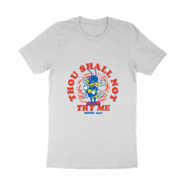 This design “ thou shall not try me ” is made in Adobe Ilustrator is ready for print.
