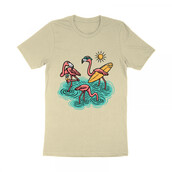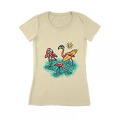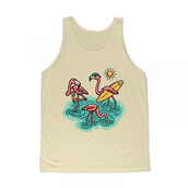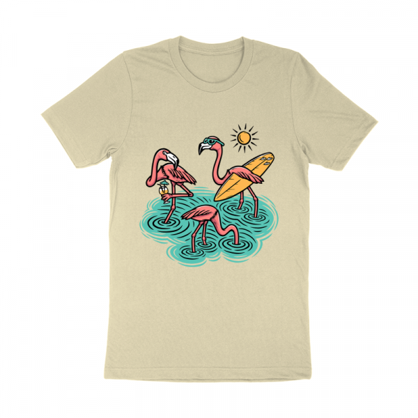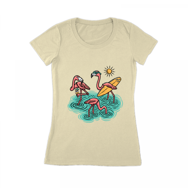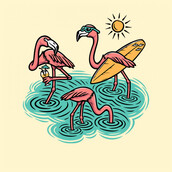 Three cute flamingos on the beach