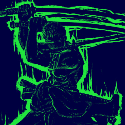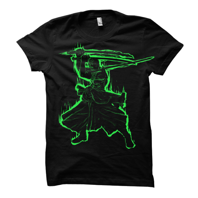 This famous pirate is one of the most iconic Straw Hat crew members. Based on the character of Zoro from One Piece, this furious strike pose will look awesome on t-shirts.