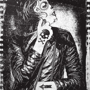 Thug life sugar skull female in a leather jacket