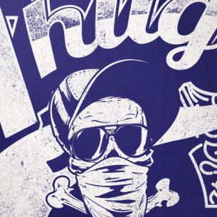 Thugs need hugs graphic design template in vector format, featuring detailed gangsta skull now available for Adobe Illustrator, Adobe Photoshop and Corel Draw and can be used for digital printing and screenprinting .