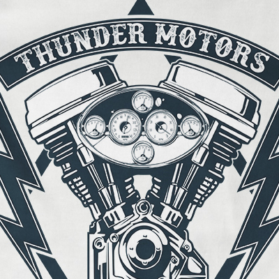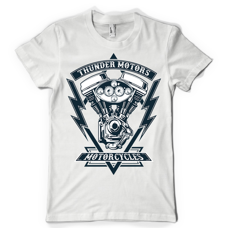 Thunder Motors design features a motors shield detailed screen print now available for Adobe Illustrator, and Corel Draw and can be used for digital printing and screenprinting.