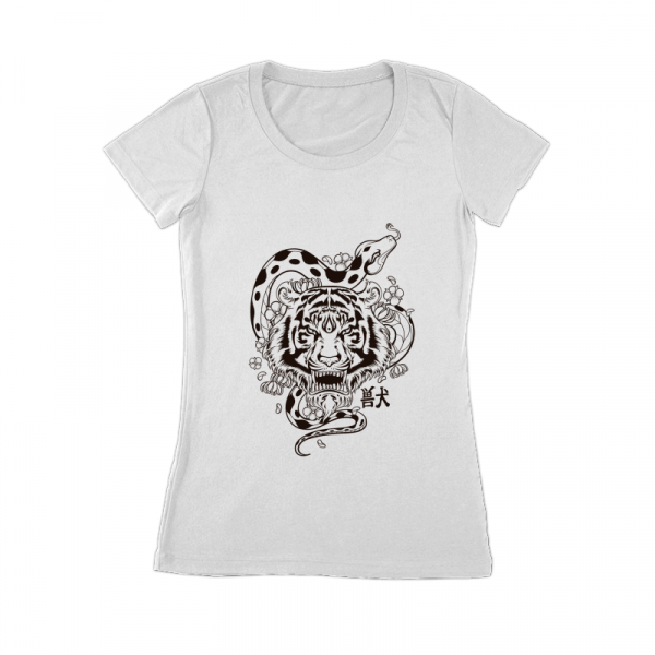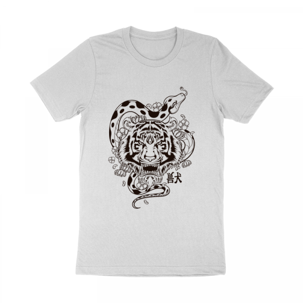 Illustration of Tiger head and Snake in Japanese style. The simple and clean outline makes this design very stand out on your shirt. This design made with vector.