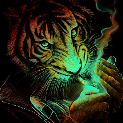 "Tiger Light" is a unique design with a tiger lighting its cigarette with unique eye-catching neon colors that make it pop. Design contains a PSD file with 17 x 24 in size and 300 in resolution.