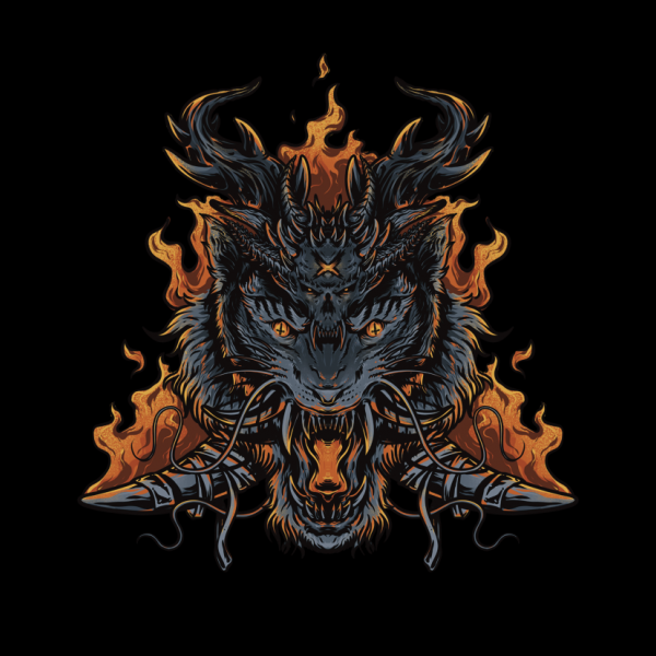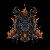 Illustration of a tiger that I joined with several objects and enveloped in triangular fire. His scary face and blazing fire can represent a person's strong soul.