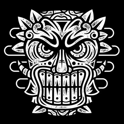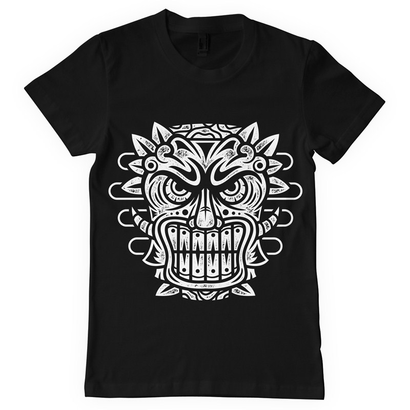 Tiki mask T-shirt design template with Adobe Photoshop 1 colour print. You can add text.