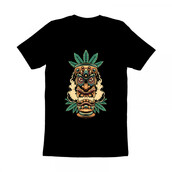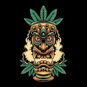 This tiki statue design with a marijuana theme is suitable for all merchandising purposes.