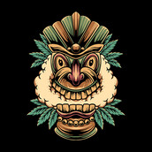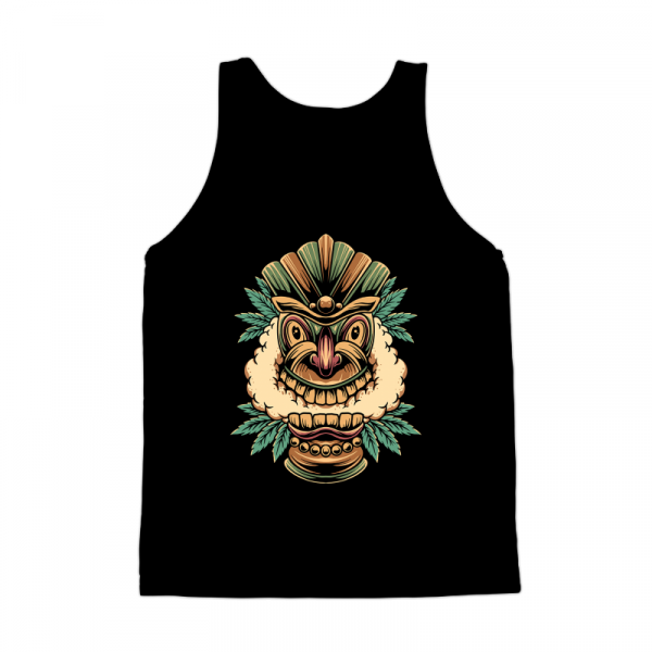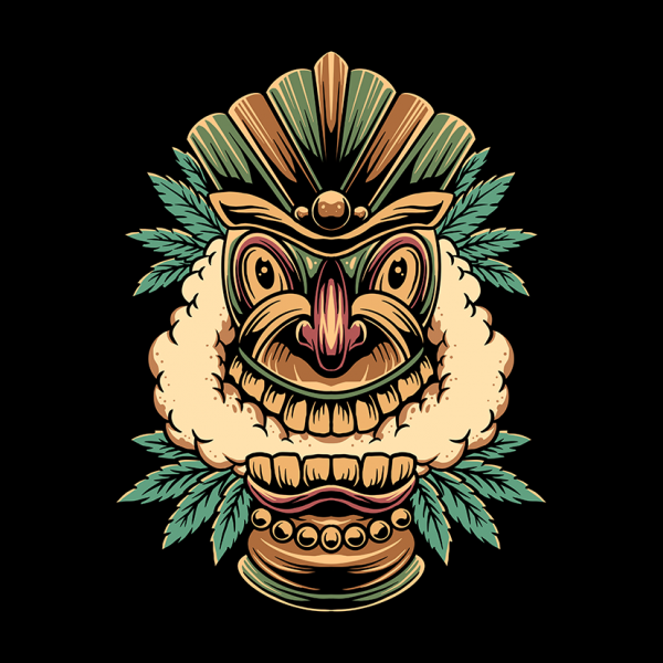 This tiki statue design with a marijuana theme is suitable for all merchandising purposes.