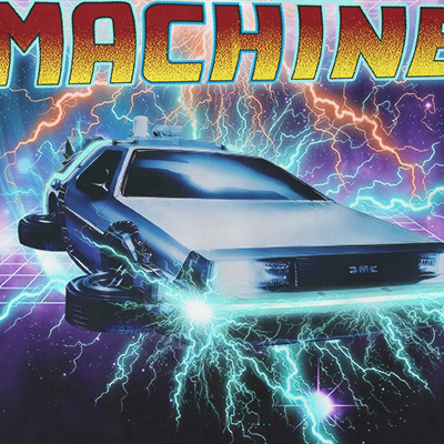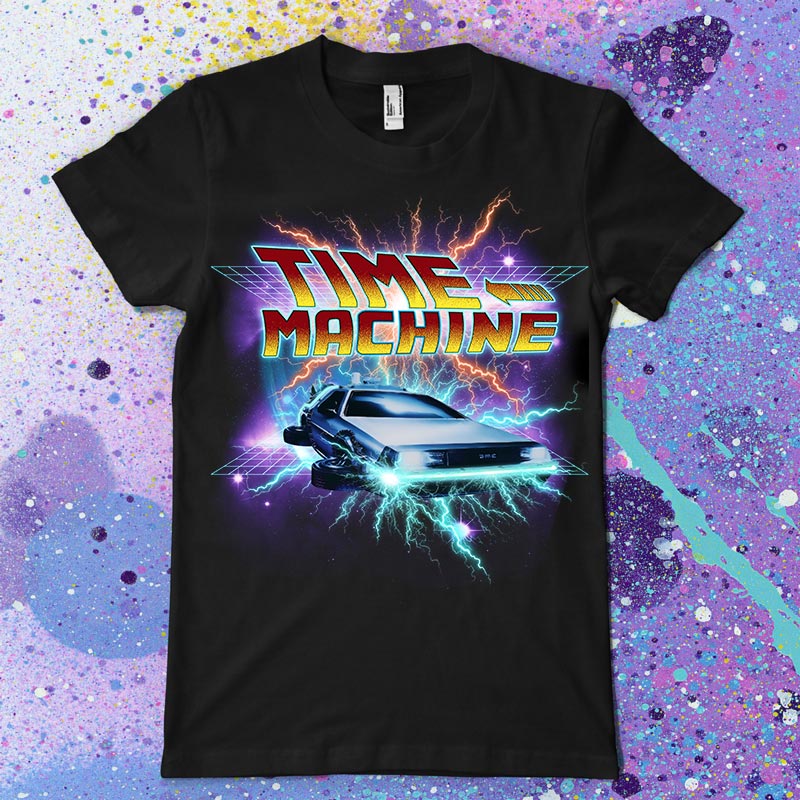 Time Machine t-shirt design features a 80s style Movie design detailed screen print now available for Adobe Illustrator, Adobe Photoshop and Corel Draw and can be used for digital printing and screenprinting.