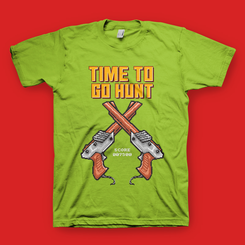 Time To Go Hunt. Inspired from the retro video game box art and classic popular video games shooter mixed with positive quotes. Made with pixel art illustration.