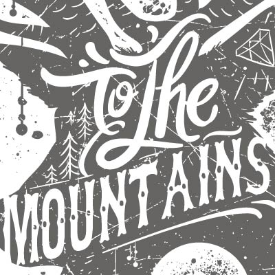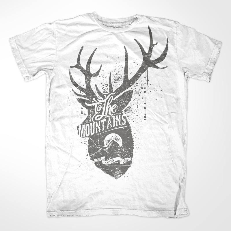 To The Mountains printed t-shirt features a detailed screen print of typographic message deer now available for Adobe Illustrator, Adobe Photoshop and Corel Draw and can be used for digital printing and screenprinting .