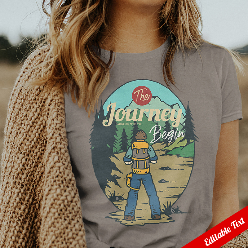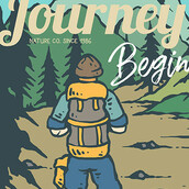 Vector illustration of a man doing adventure and hiking on the mountain with beautiful scenery. Ready to print on t-shirt.