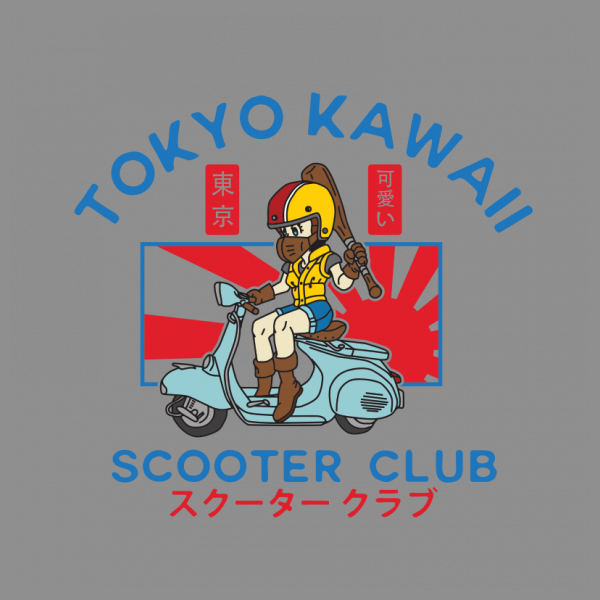 This design “Tokyo Kawaii Scooter Club” is made in Adobe Ilustrator is ready for print.