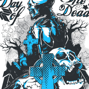 Tomb graphic design template in vector format, featuring detailed apocalyptic day now available for Adobe Illustrator, Adobe Photoshop and Corel Draw and can be used for digital printing and screenprinting .