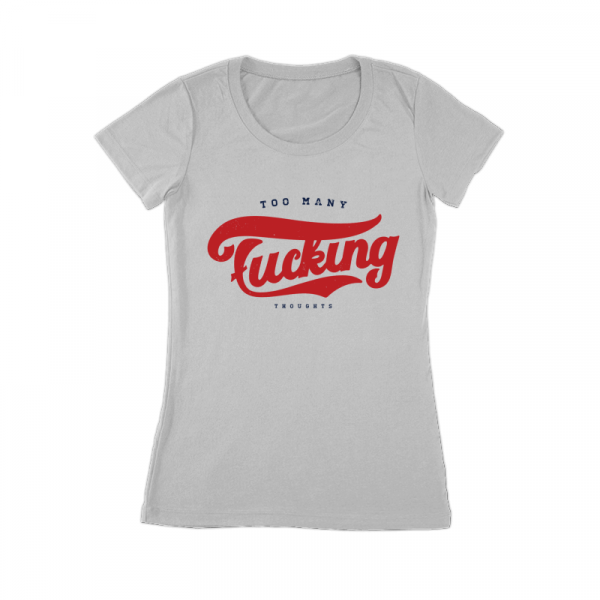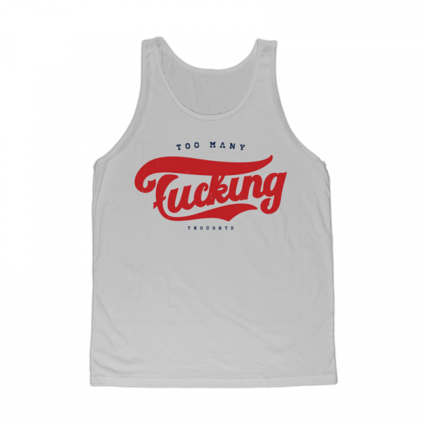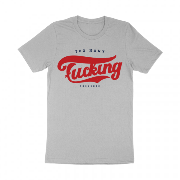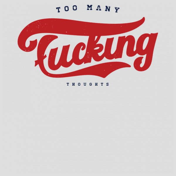 "Too Many Thoughts" T-shirt design featuring typography style quote. The files available are suitable for Adobe Illustrator and Adobe Photoshop and can be used for digital printing and screen-printing.