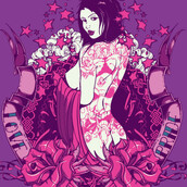 Punk girl with back tattoo on a flourish background