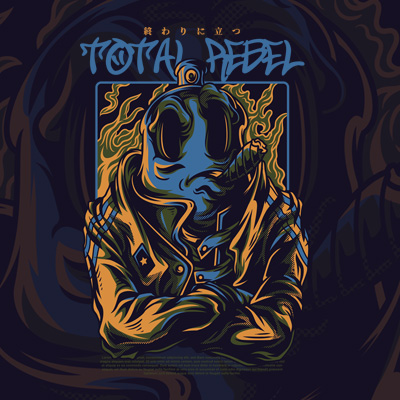 Total Rebel T-Shirt Design it's a character design that was made in Adobe Illustrator. Based on vector file, easy to resize and edit. File features AI, EPS, and PNG all in zip, CMYK color mode and 4 color. Can be used for digital printing and screen printing.