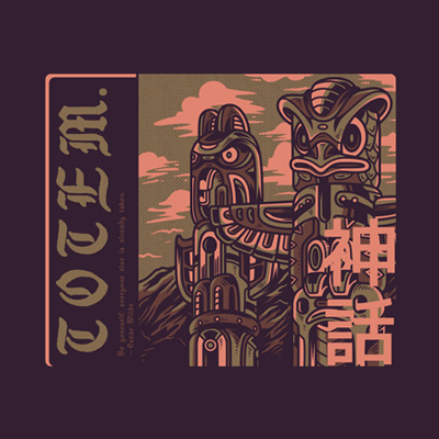 Totem Part 2 it's a character design that was made in Adobe Illustrator. Based on vector file, easy to resize and edit. File features AI, EPS, and PNG all in zip, CMYK color mode and 4 color. Can be used for digital printing and screen printing.