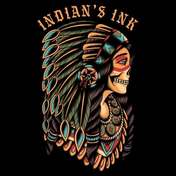 Traditional Indian Chief Girl for clothing project, band merch or poster