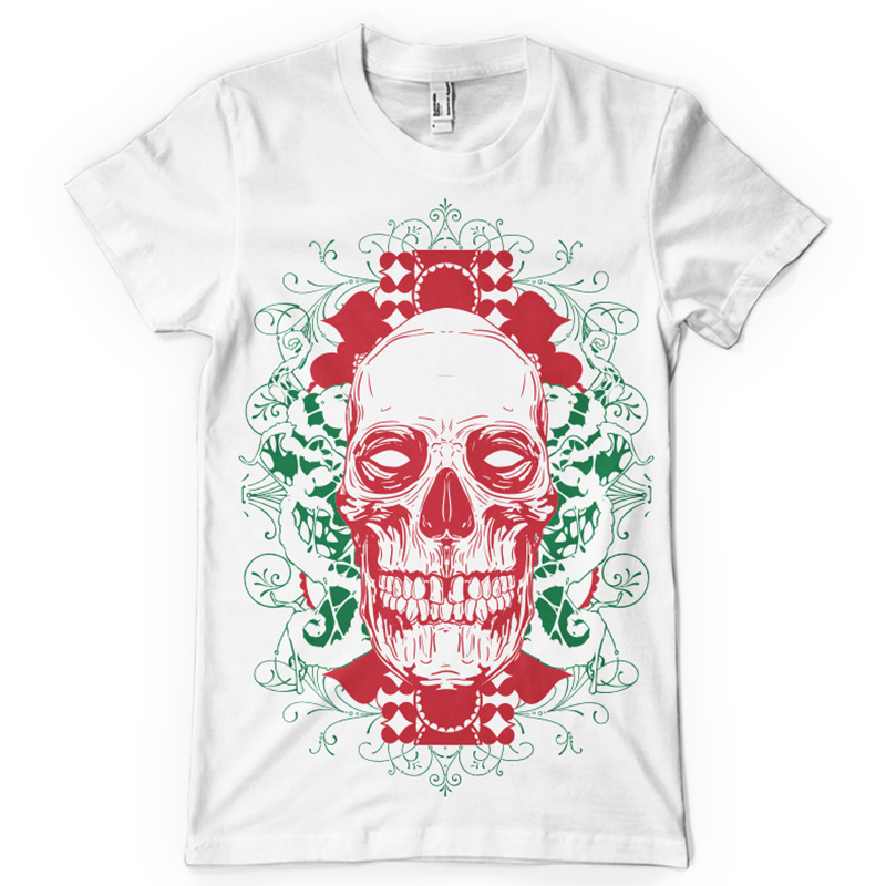 Traditional skull print features a detailed design available for Adobe Illustrator, Adobe Photoshop and Corel Draw and can be used for digital printing and screenprinting . Ready to print or use in anything you want.