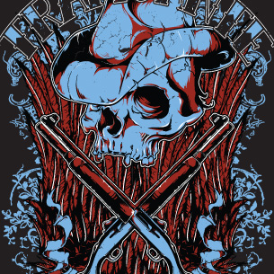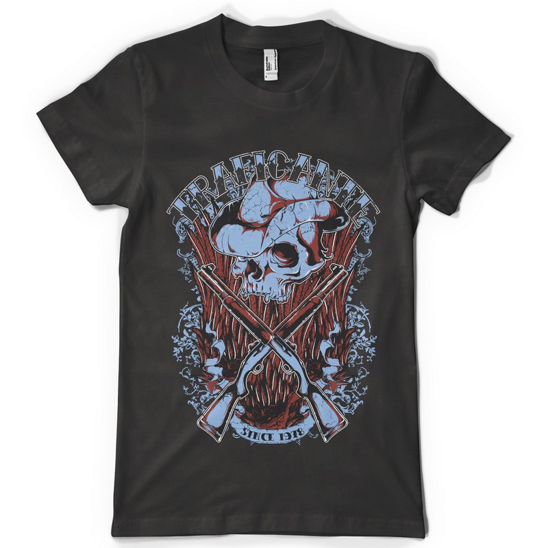 Traficante digital design template in vector format, featuring detailed skull cowboy now available for Adobe Illustrator, Adobe Photoshop and Corel Draw and can be used for digital printing and screenprinting .