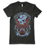 Hunter skull with shotguns on flourish background